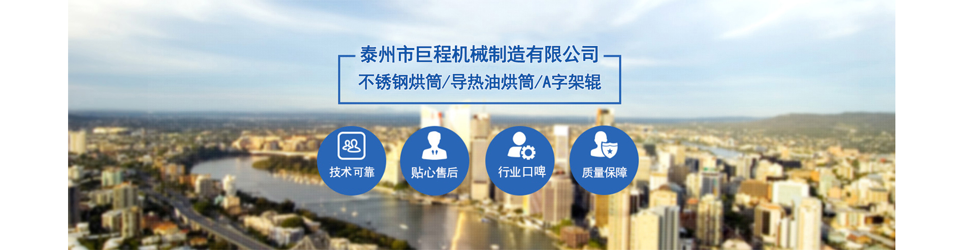 泰州市巨程機械制造有限公司 泰州市巨程機械制造有限公司泰州市巨程機械制造有限公司是一個專業(yè)生產(chǎn)不銹鋼烘筒、導熱油烘筒、雙層冷水輥、A字架輥、染整設備等產(chǎn)品的機械公司。我公司注重產(chǎn)品質(zhì)量,講求企業(yè)信譽。我公司重點在于內(nèi)部管理,努力提高產(chǎn)品質(zhì)量,強化全體員工的服務意識,形成了一套我廠的用戶定期回訪制度,積極搜集廣大用戶在使用我廠設備過程中反饋回的各種信息,有針對性的組織人員進行專項攻關